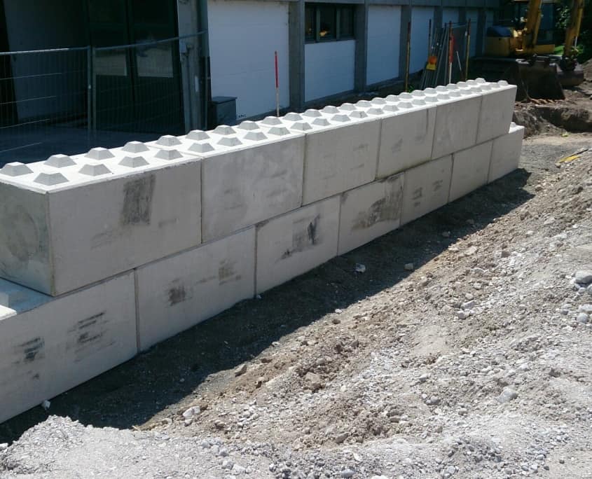 Lärmschutzaufgaben und Brandschutzwände ist das KIWIBLOCK-System mit den entsprechenden Dimensionierungen und Auslegungen